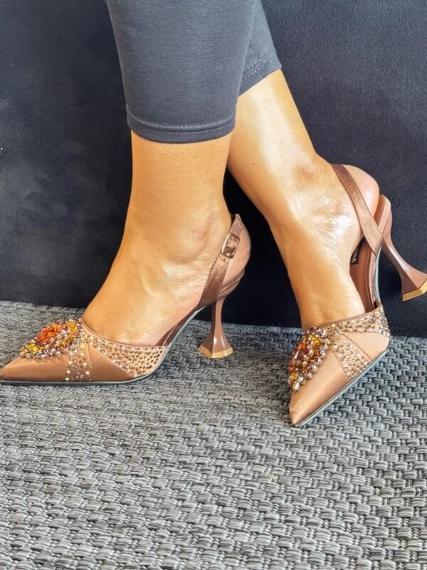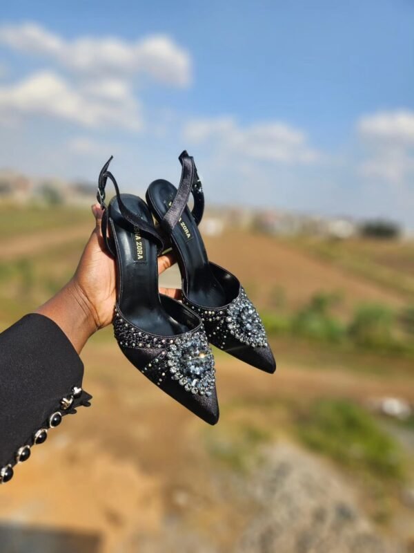 ✨ Elevate your style with these stunning Vesna Zora Slingback Heels, designed for women who love to sparkle with confidence. Featuring a pointed toe, elegant crystal embellishments, and a comfortable mid heel, these shoes bring a perfect balance of glamour and sophistication to your wardrobe.